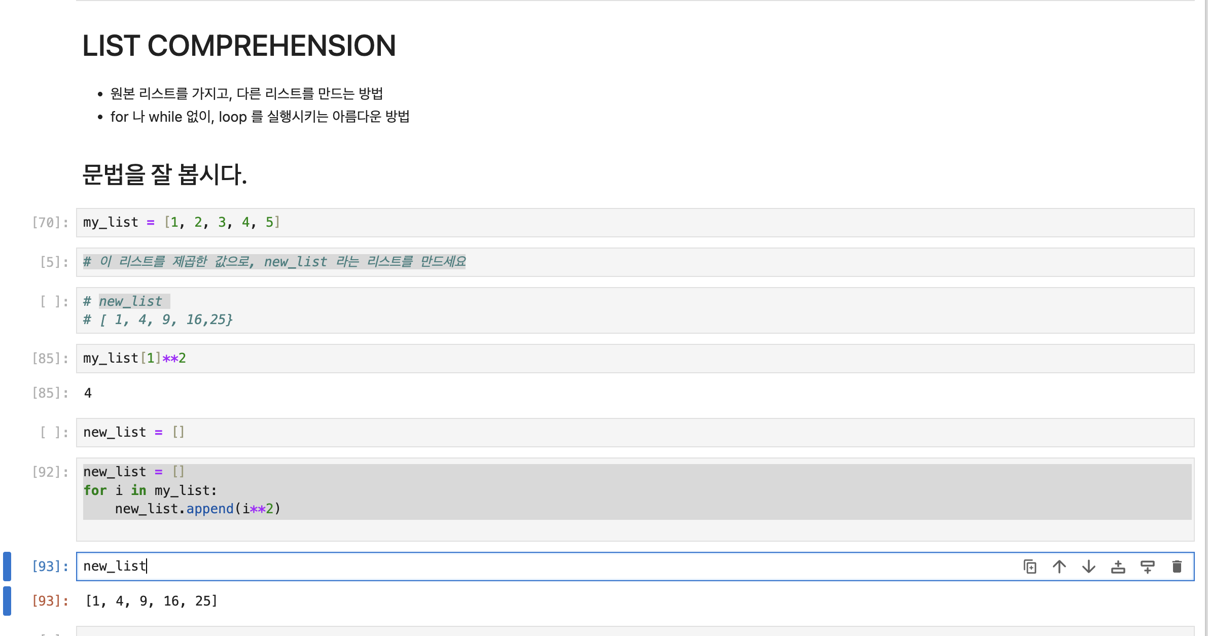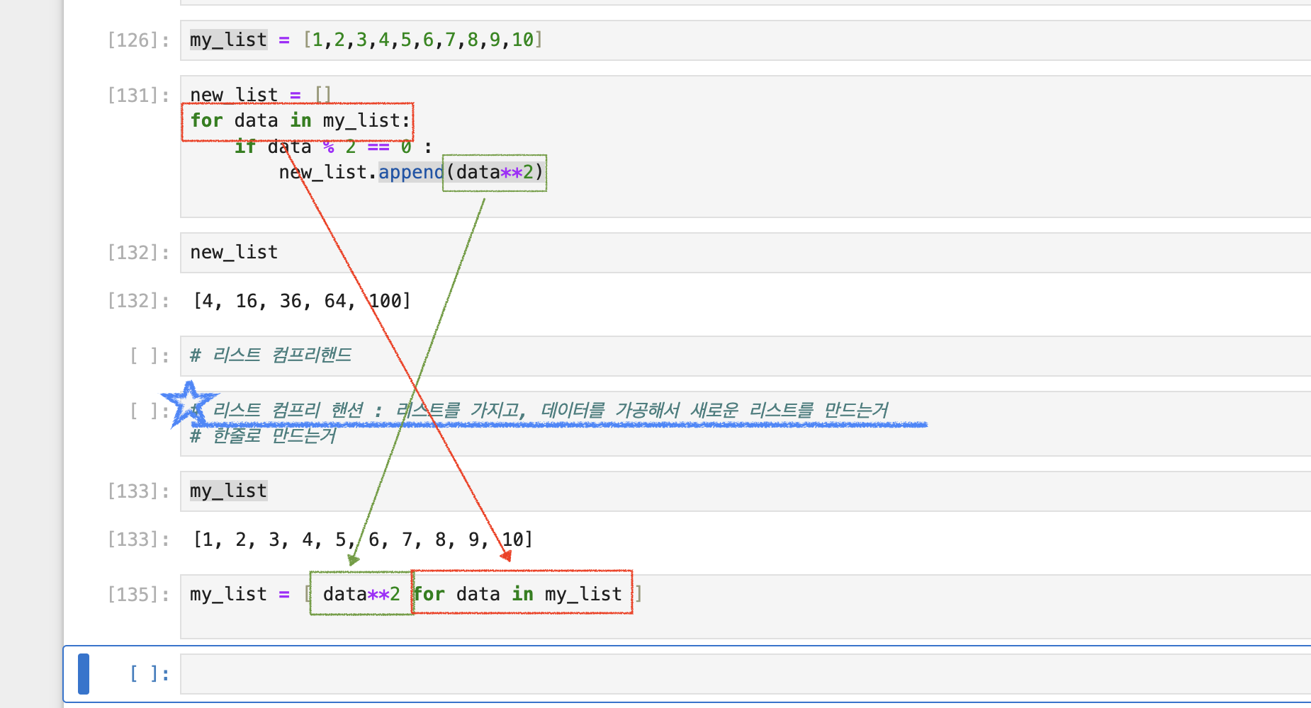 for 문을 한 줄로 간단하게 작성하여 리스트를 생성할 수 있습니다.
