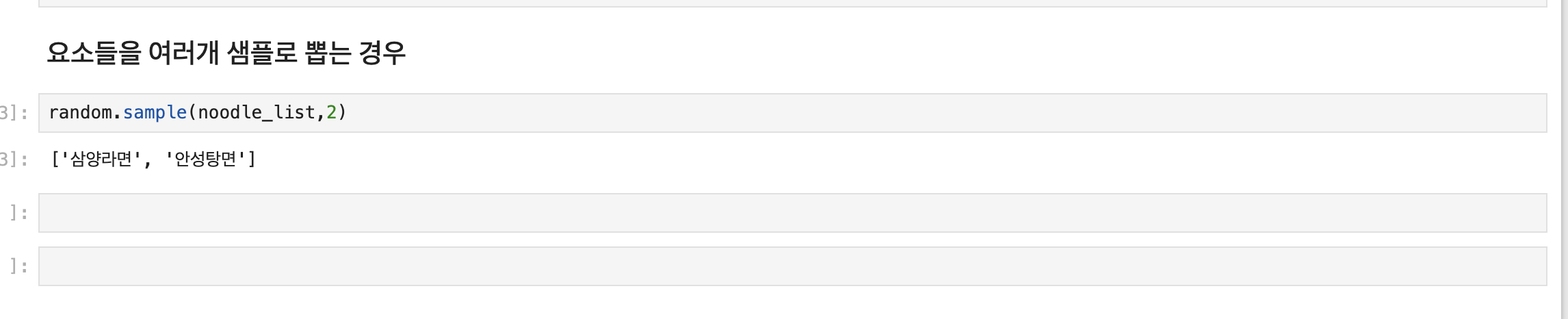 - 리스트에서 지정된 개수만큼 무작위로 선택.