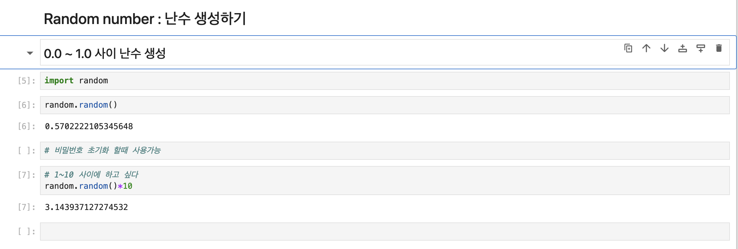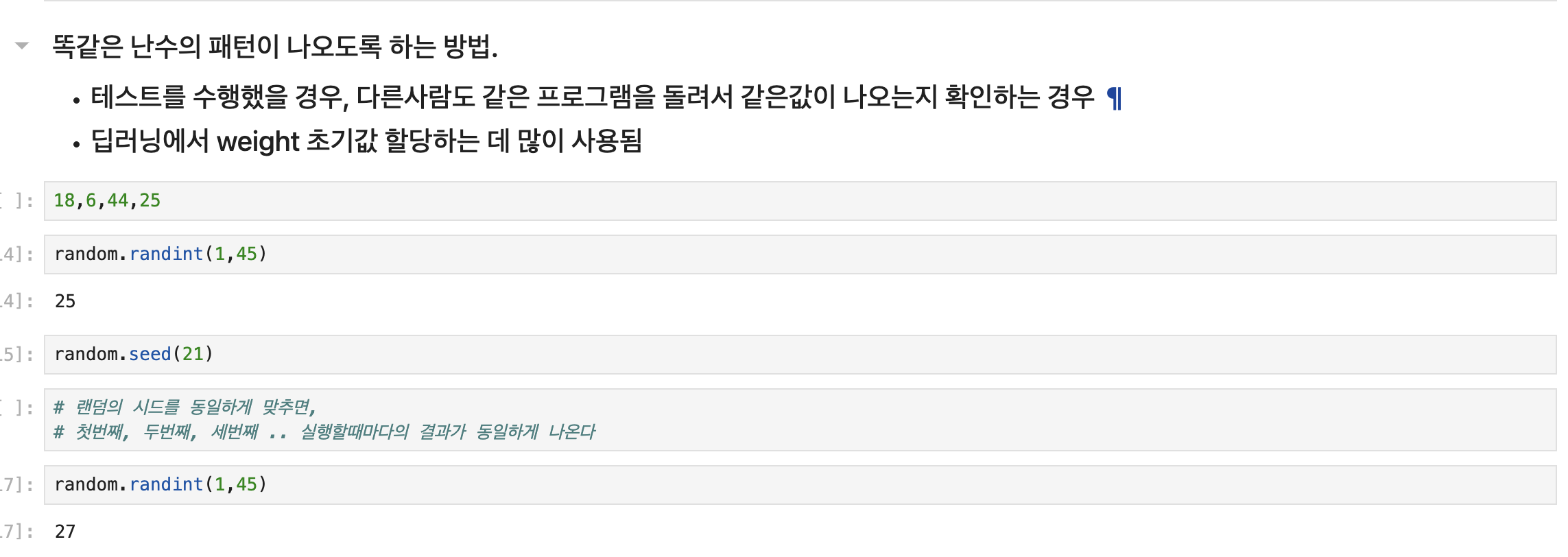- 동일한 난수를 반복적으로 생성하려면 seed()를 사용합니다.