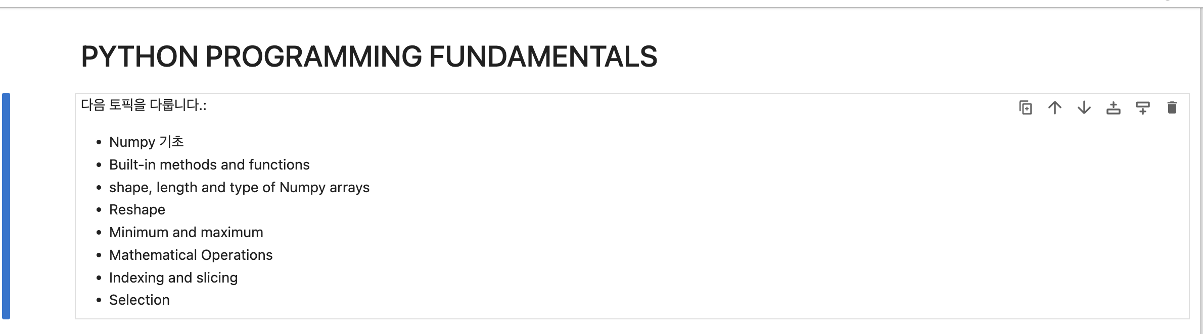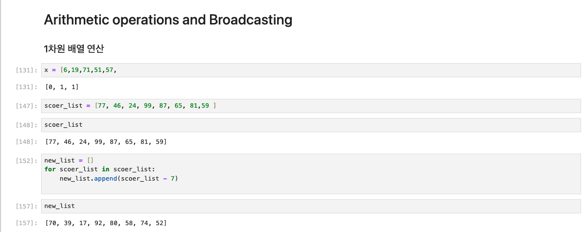 - 리스트와 배열의 차이를 이해하세요. Numpy 배열은 다양한 연산과 벡터화를 지원합니다.