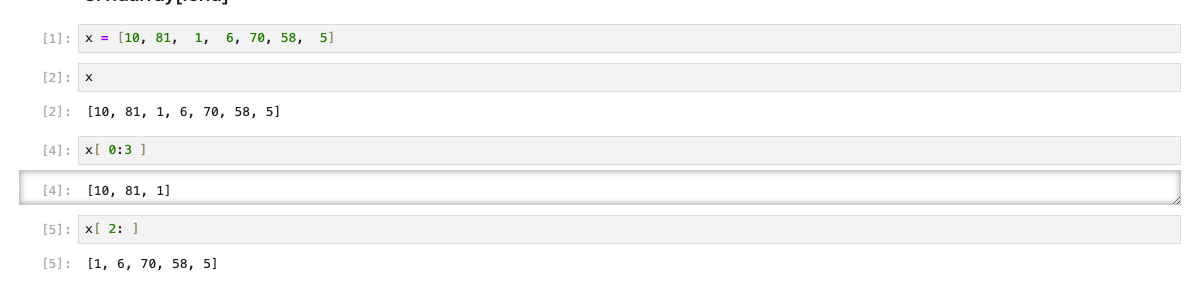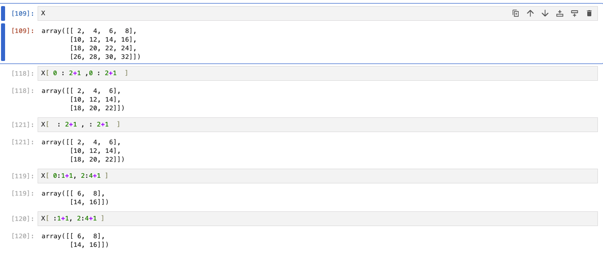 - 2차원 배열에서는 행과 열을 지정하여 자르기:결과: 1