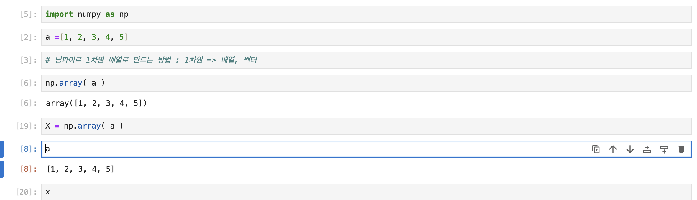 - Numpy 배열을 생성하는 가장 기본적인 방법:
