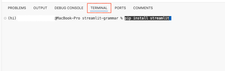 스트림릿 사이트에 설치방법이 있는데 클릭하면 클릭하면 자동 복사가 됩니다.