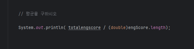 System.out.println( totalengscore / ( double ) engScore.length ) ; |
