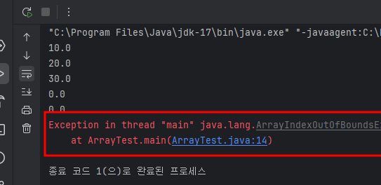 ArrayIndexOutOfBoundsException: 이 예외는 배열에 접근할 때 제공된 인덱스가 배열의 크기보다 크거나 음수일 때 발생합니다.