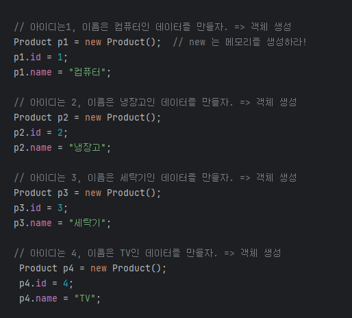 - 하나의 클래스로부터 여러 객체를 생성할 수 있습니다.