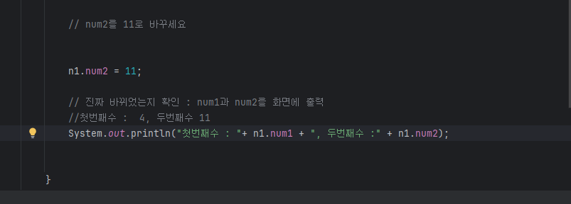 - 인스턴스 변수: static이 붙지 않은 멤버 변수로, 객체를 생성해야 접근 가능합니다.