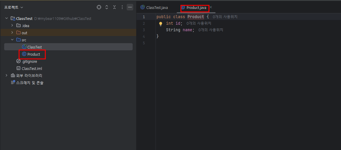 - 사용 범위는 해당 클래스 전체이며, private가 아니면 다른 클래스에서도 접근 가능합니다.
