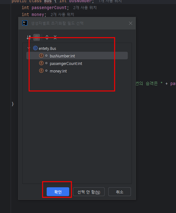 Bus bus100 = new Bus( ); // 공란으로 진행할경우 오류가 발생할수 있습니다. 이럴경우 Bus 클래스에 Dufalt값을 설정해줍니다. Bus bus100 = new Bus(100); |