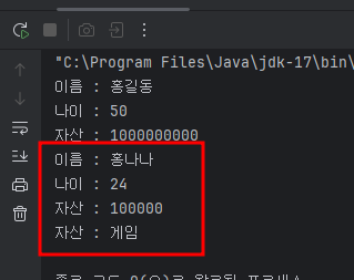 // Customer의 displayInfo() 메서드 다시 호출하여 포인트 증가 확인