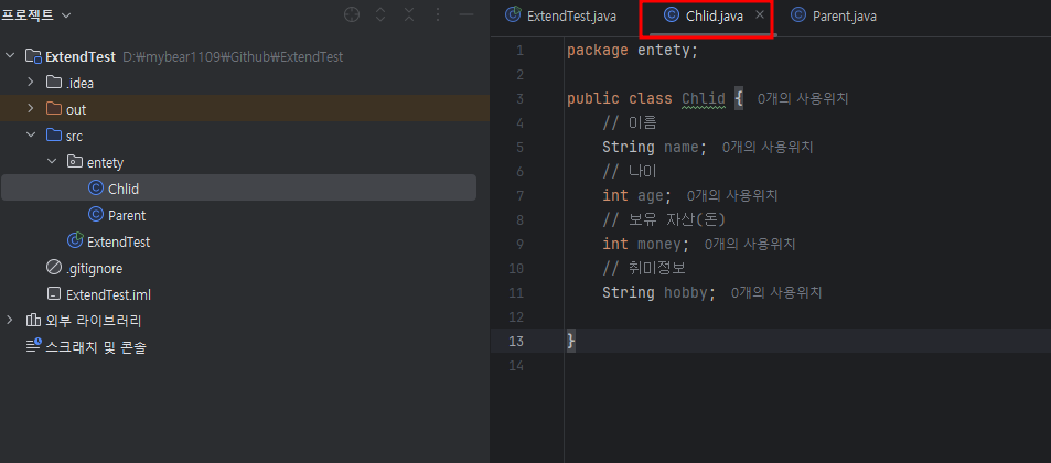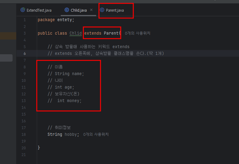 // 상속 받을때 사용하는 키워드 extends 입니다.