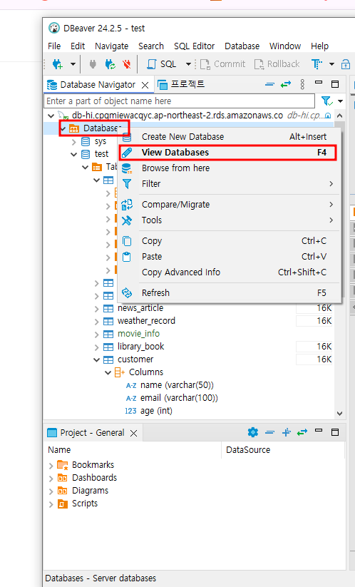 Database에서 View Database를 클릭합니다.