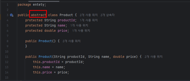 1) abstract 키워드를 사용하여 선언합니다.