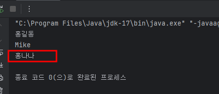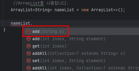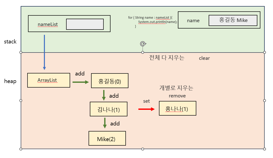 nameList.add("홍길동"); nameList.add("김나나"); nameList.add("Mike"); |