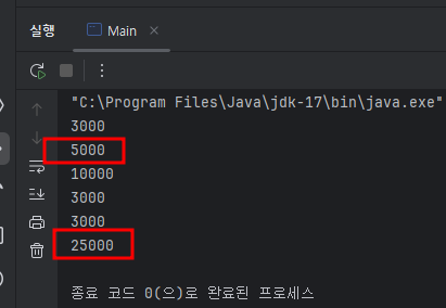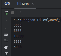ArrayList<Integer> priceList = new ArrayList<>(); priceList.add(3000); priceList.add(5000); priceList.add(10000); priceList.add(3000); priceList.add(3000); |
