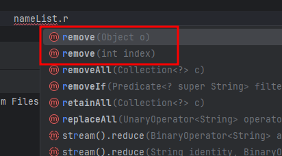 // 홍나나 삭제 (Object) nameList.remove("홍나나"); // nameList.remove(1) (index) nameList.remove(1); |