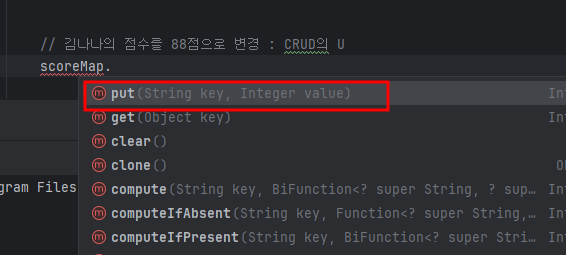 scoreMap.put("김나나", 88); System.out.println( scoreMap.get("김나나") ); |