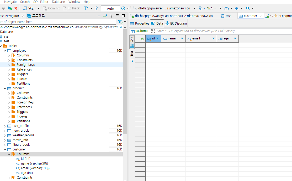 예: INSERT INTO customer (name, email, age) values("인공지능기술은우리의생활을혁신적으로변화시키고있으며,다양한분야에서활용되고있습니다.미래의가능성은무궁무진합니다", "test@naver.com", 44); |