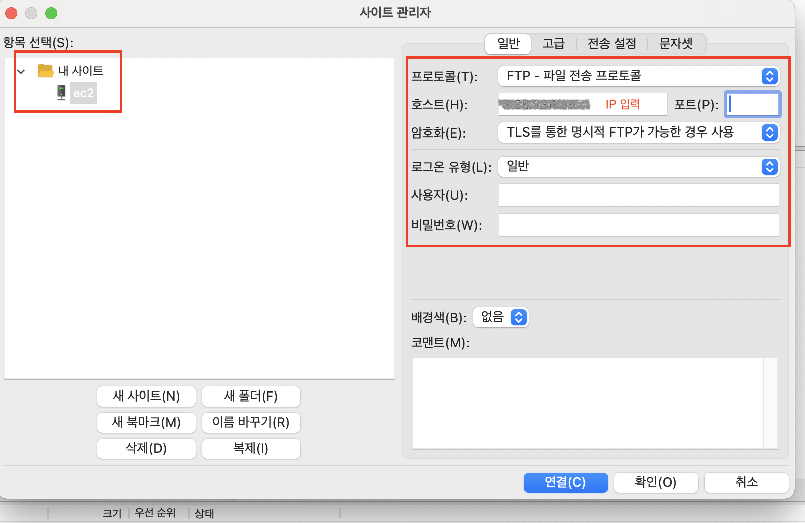 6. filezilla 실행되면 호스트, 사용자명, 비밀번호, 포트를 기입