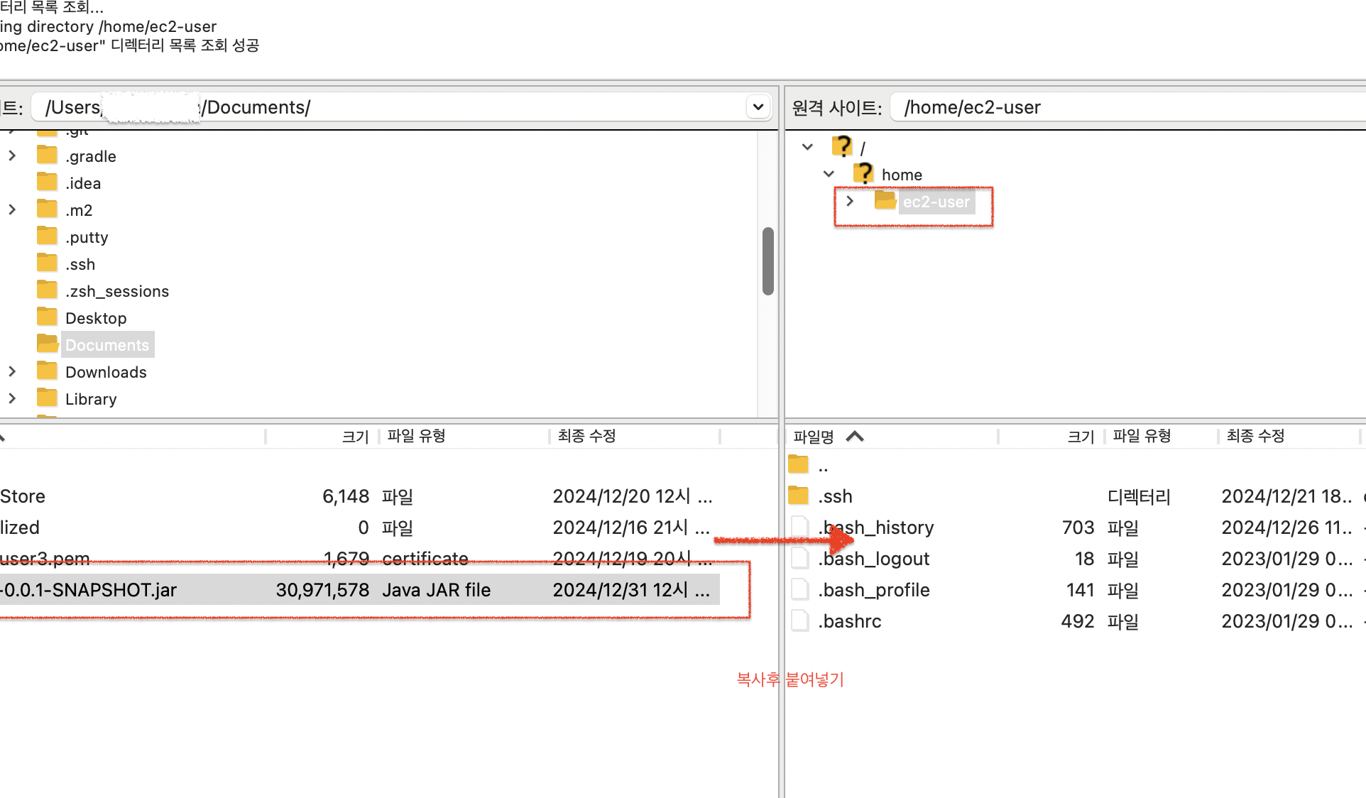 8. Putty (Window 유저)및 터미널(mac유저) 열어 아래와 같이 작성
